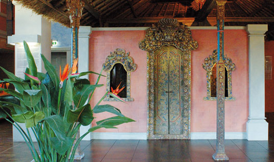This complex world of Balinese beliefs is well represented by a very complex and intricate room built according to the construction specifications of a Balinese homestead. A circuit of five stations allows visitors to become acquainted with the art of sacrificial offering on the island of Bali; you are invited to explore the significance of sacrifices in the varied Balinese ritual life, which is characterized by diverse festivities.