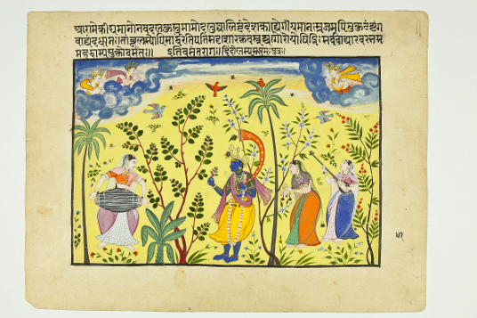 Auf unzähligen Miniaturmalereien werden Blumen, Bäume und Gärten abgebildet. Mit ihrem überraschendem Reichtum an präzisen Details bieten solche Malereien vielfältige Einblicke in religiöse und kulturhistorische Bezüge von Pflanzen und Bäumen und geben ein sensibles Bild von der Freude der Inder an Blumen und Gärten.